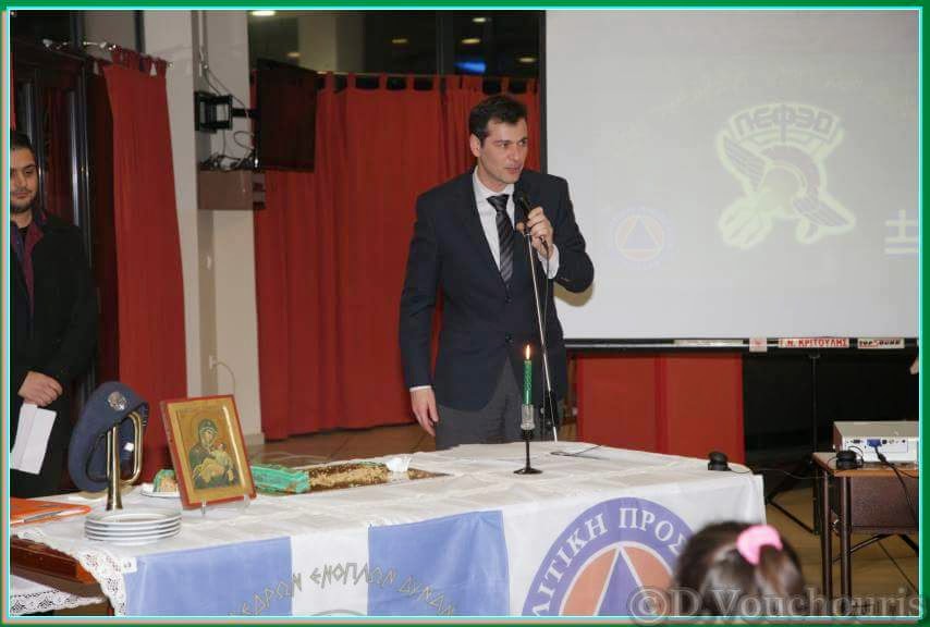 Ακολούθησε ο Γραμματέας και υπεύθυνος πολιτικής προστασίας, όπου παρουσίασε την σπουδαιότητα της προσφοράς της Λ.Εφ.Ε.Δ. στην τοπική κοινωνία κι έκανε έναν μικρό απολογισμό των δράσεων της χρονιάς που πέρασε.